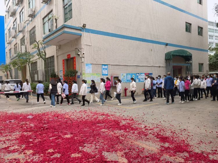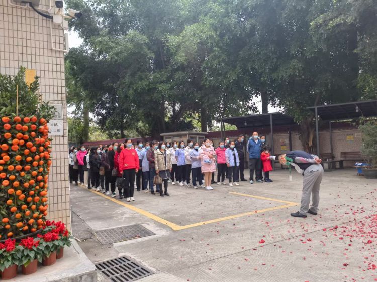 派发开工红包后,各员工有序入厂开工