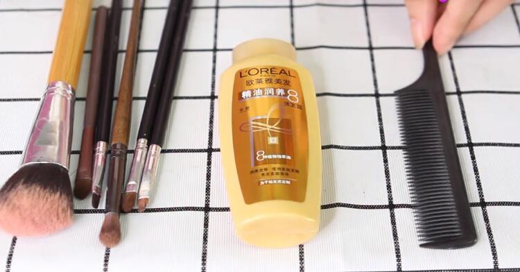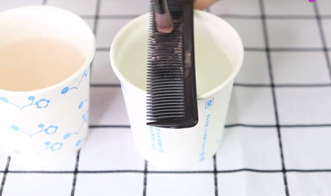 (一杯清水、一杯放入洗发露,把刷子在水中清洗一次再用梳子来回摩擦)
